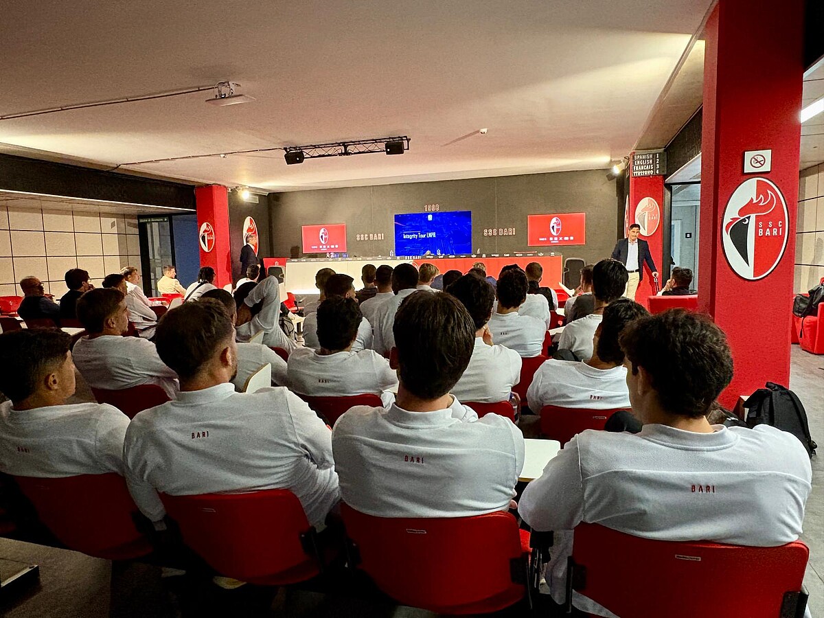 All’incontro hanno partecipato i membri della Prima Squadra, della Primavera e dell’Under 17 della S.S.C. Bari, coinvolti in una sessione formativa dedicata ai rischi connessi al match-fixing e ai comportamenti che possono compromettere la regolarità delle competizioni.